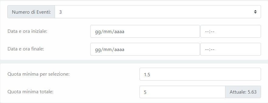 Tutte le multiple qualificanti devono essere piazzate a quota minima totale 5.00 e quota minima 1.50 per selezione.