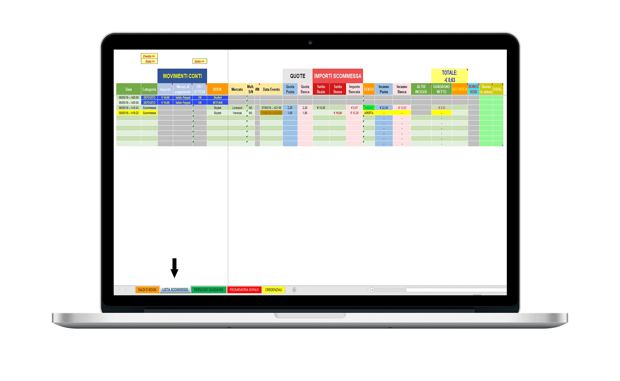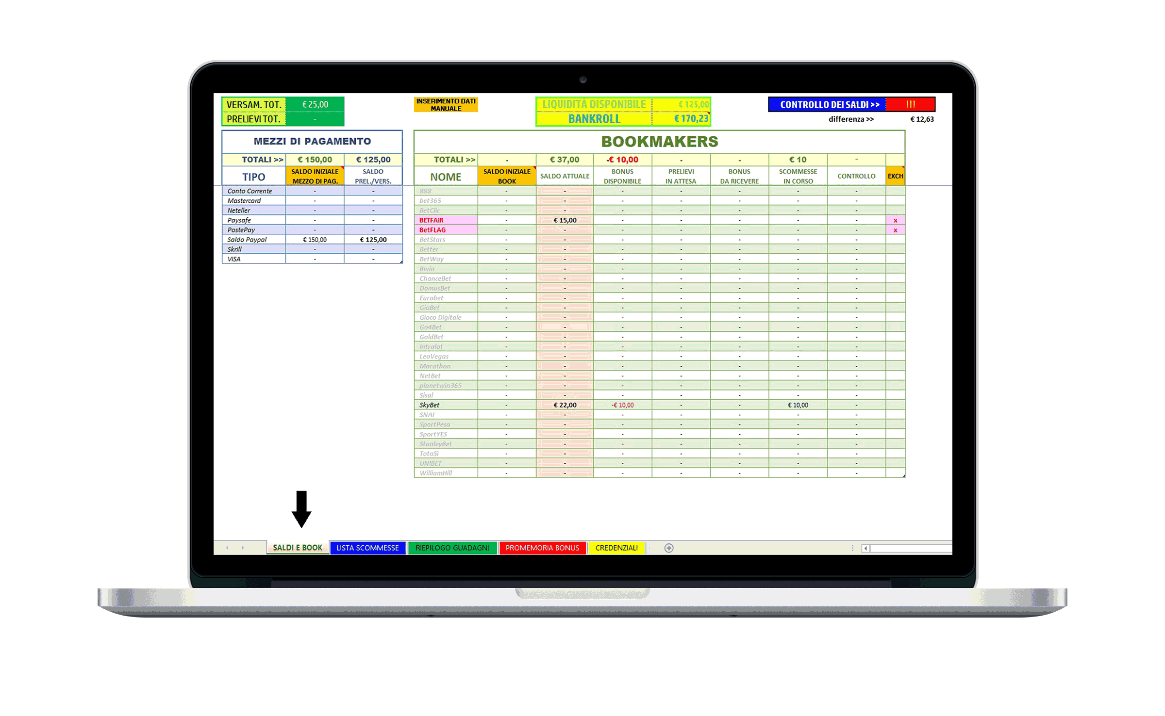 - Tenere conto dei prelievi e dei depositi effettuati sui vari bookmakers