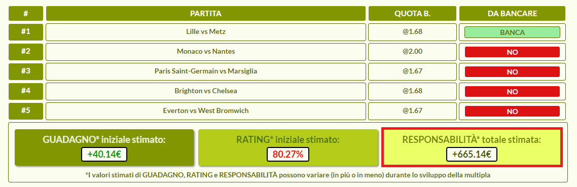 Se la quinta partita vince, la puntata fatta sulla multipla risulterà vincente e avrai i tuoi profitti su PlaceBets.