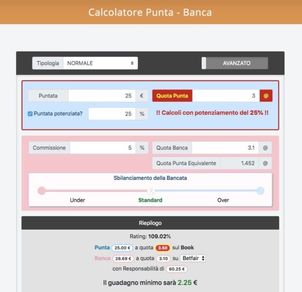 Durante l’evento LIVE apri la pagina relativa sia su Unibet che su Betfair Exchange. E apri quindi il Calcolatore Punta–Banca.
