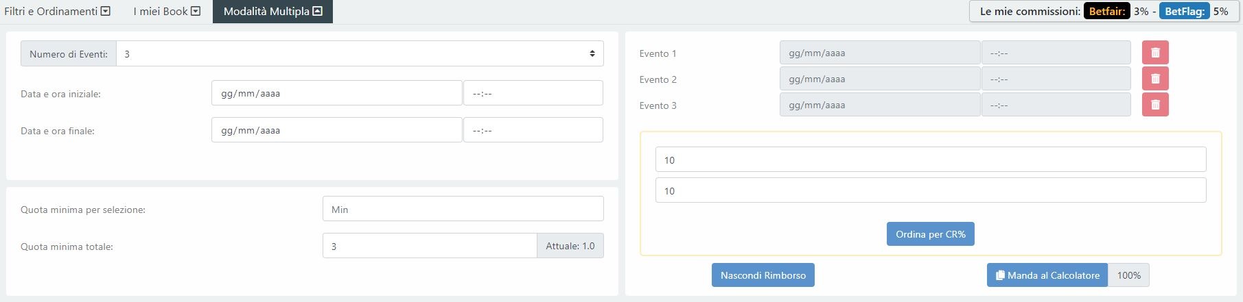 Tramite l’Oddsmatcher andiamo a trovare la multipla che ci permetta di massimizzare il guadagno: