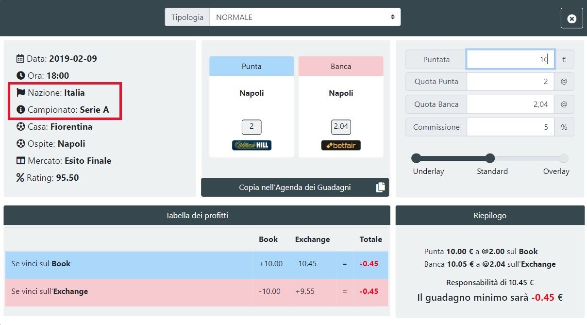 La prima parte dell’offerta è dunque conclusa (riceverai i guadagni o su WilliamHill o su Betfair al termine della partita scelta).